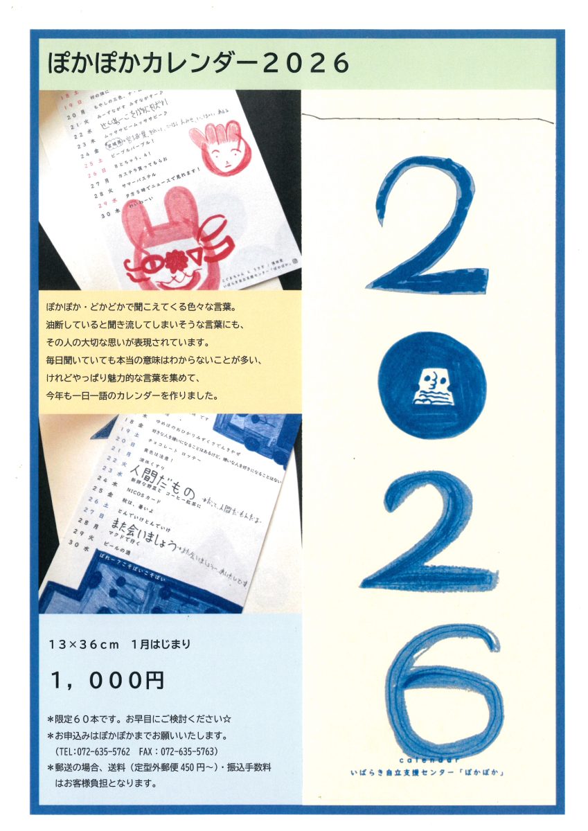 ぽかぽか・どかどかの活動の発信、またメンバーの工賃源として、今年も完売を目指しています。